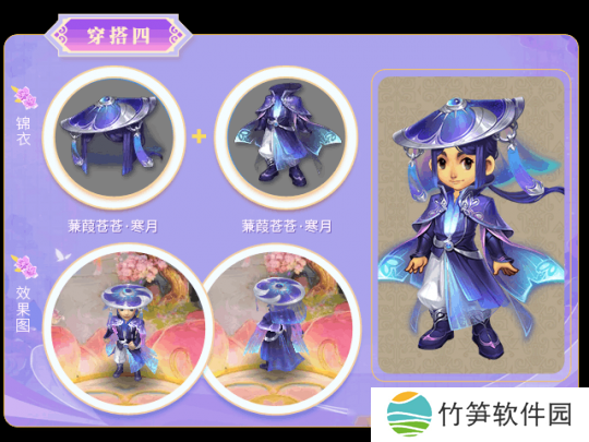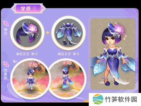 女侠/少侠:蒹葭苍苍·寒月(头/衣)幻羽后【蒹葭苍苍·寒月】,深紫色到蓝色的渐变,如黑夜中的萤火虫。男装更有侠客的感觉。