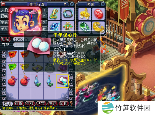 正式服的千年保心丹也属于能回血、能回伤的存在,恢复气血的公式为品质*4+200,恢复伤势的公式为品质*4+100。也就是说,一颗220品的千年保心丹可以恢复1080点气血和980点伤势。