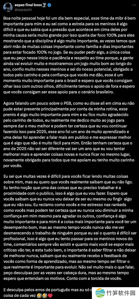 aspas更新社交账户发布长文:今年是我学习和成长的一年