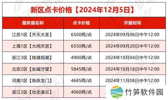【2024年12月5日】梦幻西游三月内新区物价、点卡调研报告
