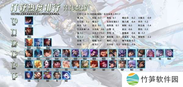 打野热度排行,澜削弱无关紧要继续霸榜,坦野还是强