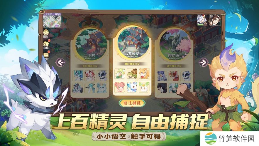 3、密林捕捉,趣味升级!收集养成,自由探险!使用宝葫芦捉灵宠,捕捉过程还有机会收获惊喜变异的灵宠!