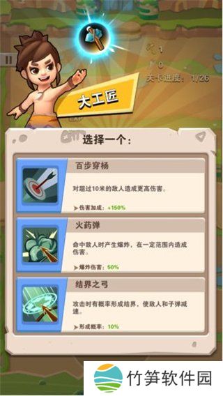 随着关卡的深入,建议提升技能等级选择相对辅助的技能,如结界之弓。