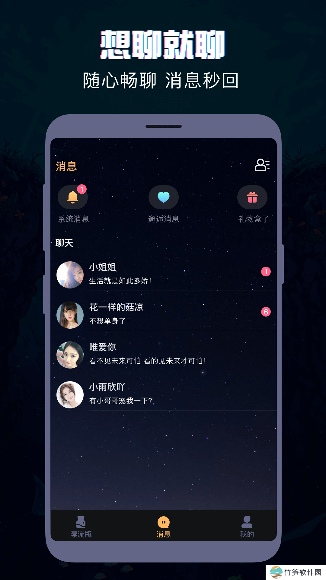 陌聊漂流瓶app说明1、各用户可获得更好的社交功能,享受线上优质的社交体验。