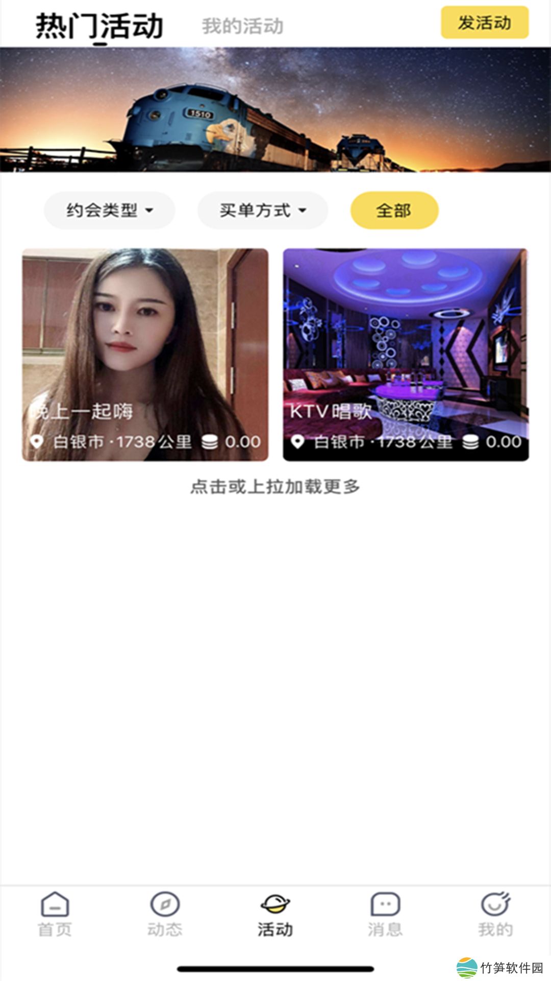 发布看电影、吃饭、旅游、唱歌、运动等等活动