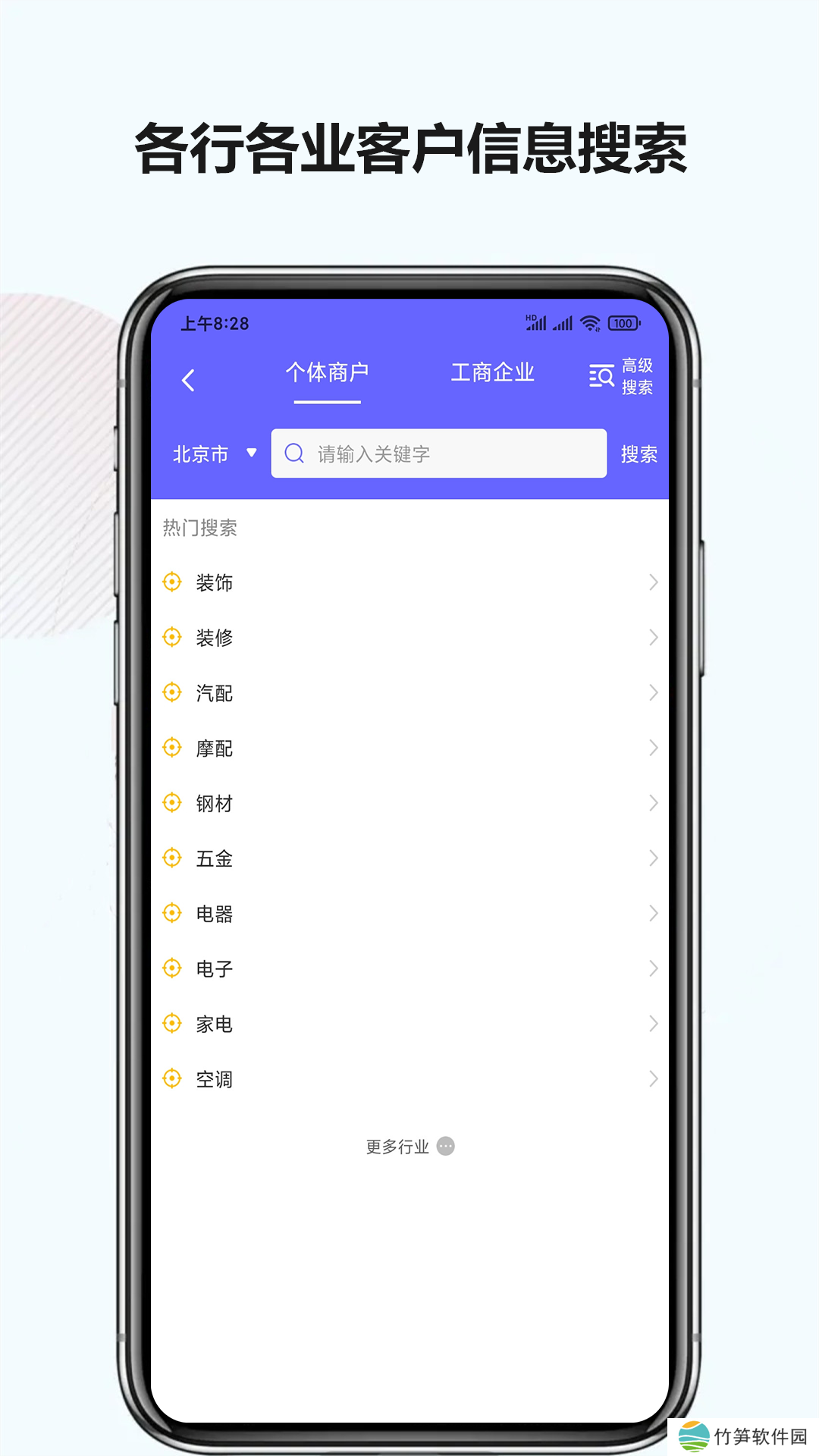 软件功能1、行业搜索,还可以根据自己的行业,针对的搜索客户,都能快速的联系。