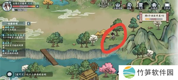5、继续探索:向前探索,拾取宝箱并完成采集任务。到达桃花林后,您需要用艾草来完成一个江湖事件。