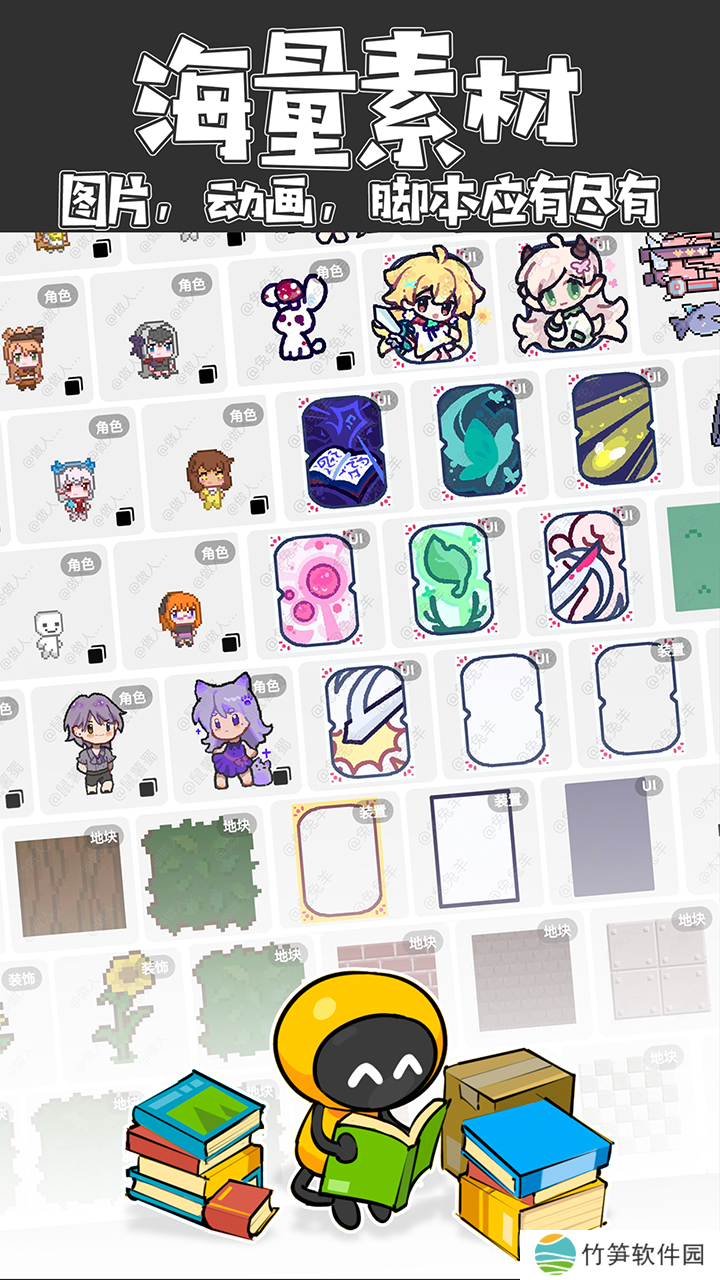 在这里,你可以创建各种类型的游戏,如角色扮演游戏、平台游戏、点击游戏、故事情节游戏以及宠物模拟器等。
