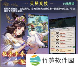 跨服竞技排名系统,争夺天梯位次并获得仙玉与橙装奖励。