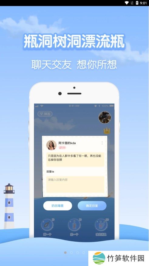瓶洞软件介绍树洞漂流瓶社交平台,匿名互动,轻松交友,匹配合适对象,在线聊天沟通,倾诉心中秘密,找到志趣相投的小伙伴,交友更简单。
