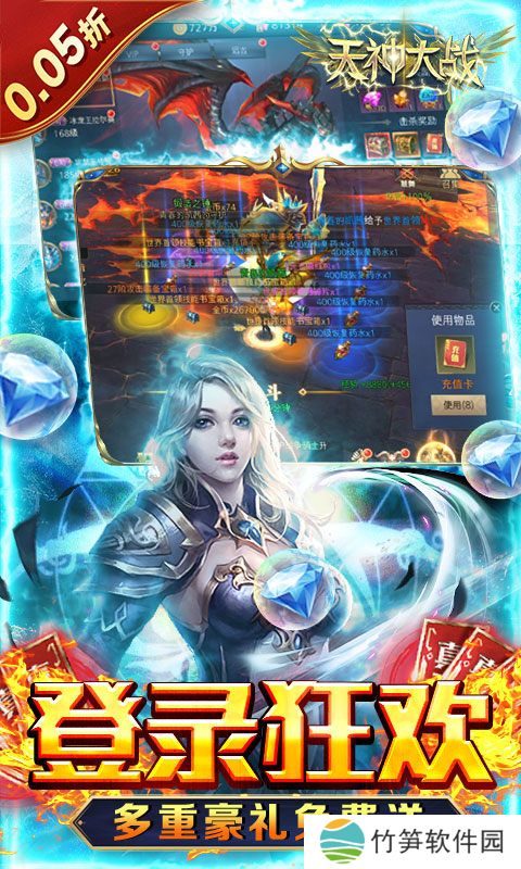 2、创建角色即获赠千元充值卡大礼包,还有888万金币、8888绑定钻石以及绝版称号等你来拿,全部免费领取!