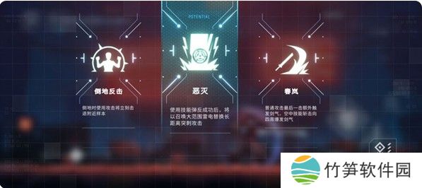 3、游戏的肉鸽元素类似哈迪斯,五种不同属性伤害或debuff强化,同时还有护盾强化/主动技能系强化/冲刺强化/环境互动强化等可获取强化奖励,最为重要的是每一关击败boss后会获得的潜能强化,潜能强化是可以强化角色,强变角色主动技及视觉效果等较为核心的强化,比如白面可以通过潜能获取主动技强化的恶灭。
