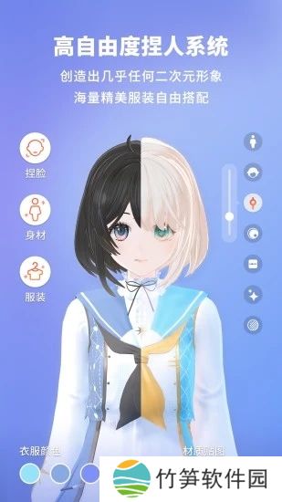 自由度Max!超过200项脸部与身体参数,捏脸捏人造出几乎任何二次元形象。JK装、lo装、古装……尽情装扮搭配造娃。更可自定义服装花纹和色彩,永不撞衫。