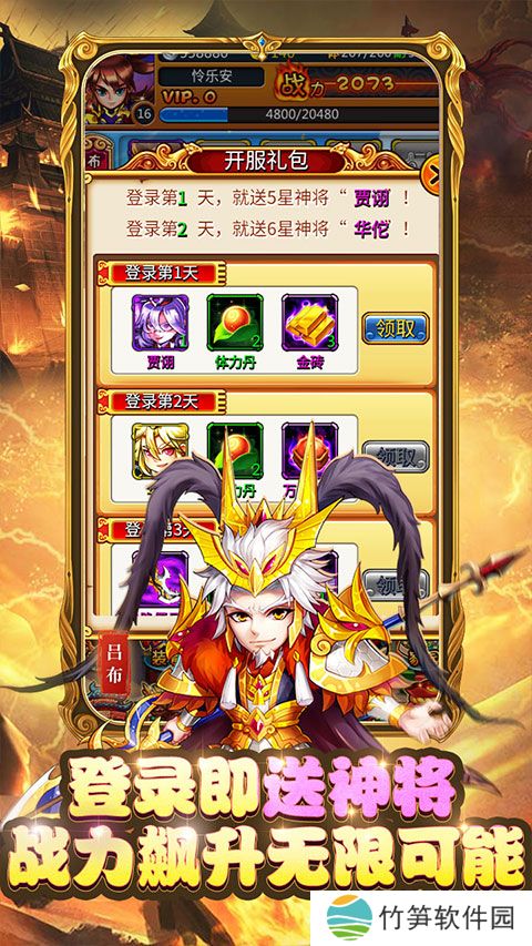 摆脱孤单寂寞收银币,征收也能得武将;酒馆免费招武将,3天必出五星将;新服竞速打副本,12000元宝抱回家;演武夺宝挣积分,装备宝石换不停!!我们的目标是:打造良心游戏,让玩家省钱也能玩到爽!!