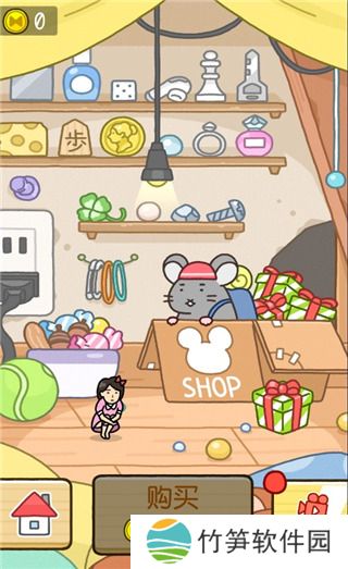 在游戏界面中,点击右下角的老鼠图标,进入商店购买道具。道具能够帮助你在躲避猫咪的追踪时更加轻松,提升游戏体验。