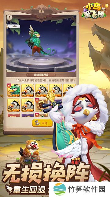 小鸟爱飞翔是一款独具匠心的回合制卡牌手游,巧妙融合了小鸟元素与世界各地名人英雄,共同构筑了一个前所未有的梦幻星球世界,你将化身为回合战略大师,每一回合都能收集并培育各式各样的鸟类,精心规划、巧妙部署,打造属于你的至强阵容,以智取胜,展开一场场精彩绝伦的战斗。