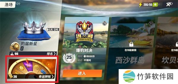 2、在钓点地图中,找到左边的‘幸运转轮’并点击进入抽奖界面。