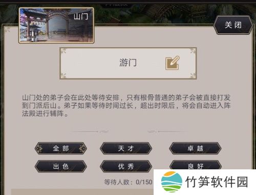 刚创建门派后,玩家可以使用百晓生赠送的推背石招募弟子并建立门派的基础设施。通过招募的弟子可以安排在《山门》中,分为亲传弟子、内门弟子和阵法值弟子。
