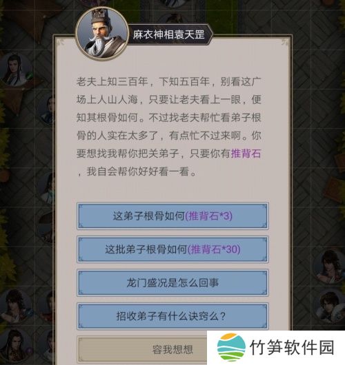 1、推背石在《龙门大会》用于招募弟子,并能有效提升门派的实力。