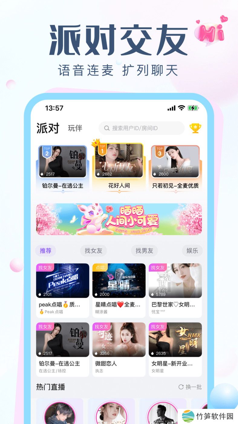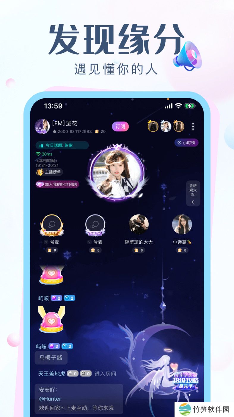 欢聊语音交友app特色1、支持语音即时通讯,使通讯更高效、更时尚,随时随地交友无忧;