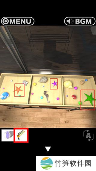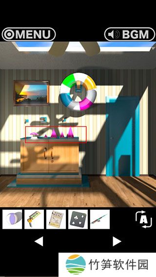 26、底下柜子上有紫的的翻船,这是上面舵的线索。