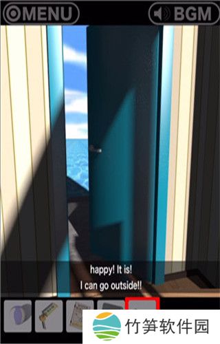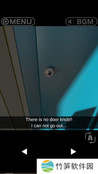 2、进入游戏,门没有门把手,不能出去,我们推门进入房间。