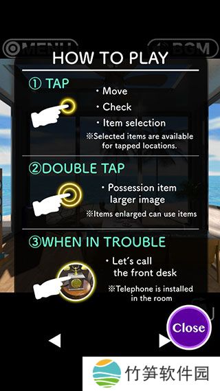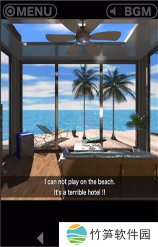 3、逃脱游戏度假酒店热带沙滩提供了操作指南,玩家需要找到线索逃脱密室。