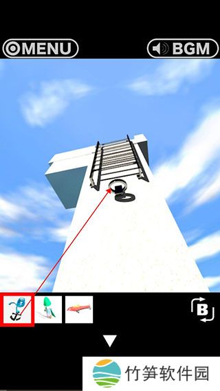 25、将音响上面的电池扒下来,插到天台的舵上面(点击舵的右侧)。