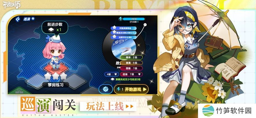 全新玩法「巡演闯关」开启,不断前进步数、自由难度挑战歌曲、领取奖励!