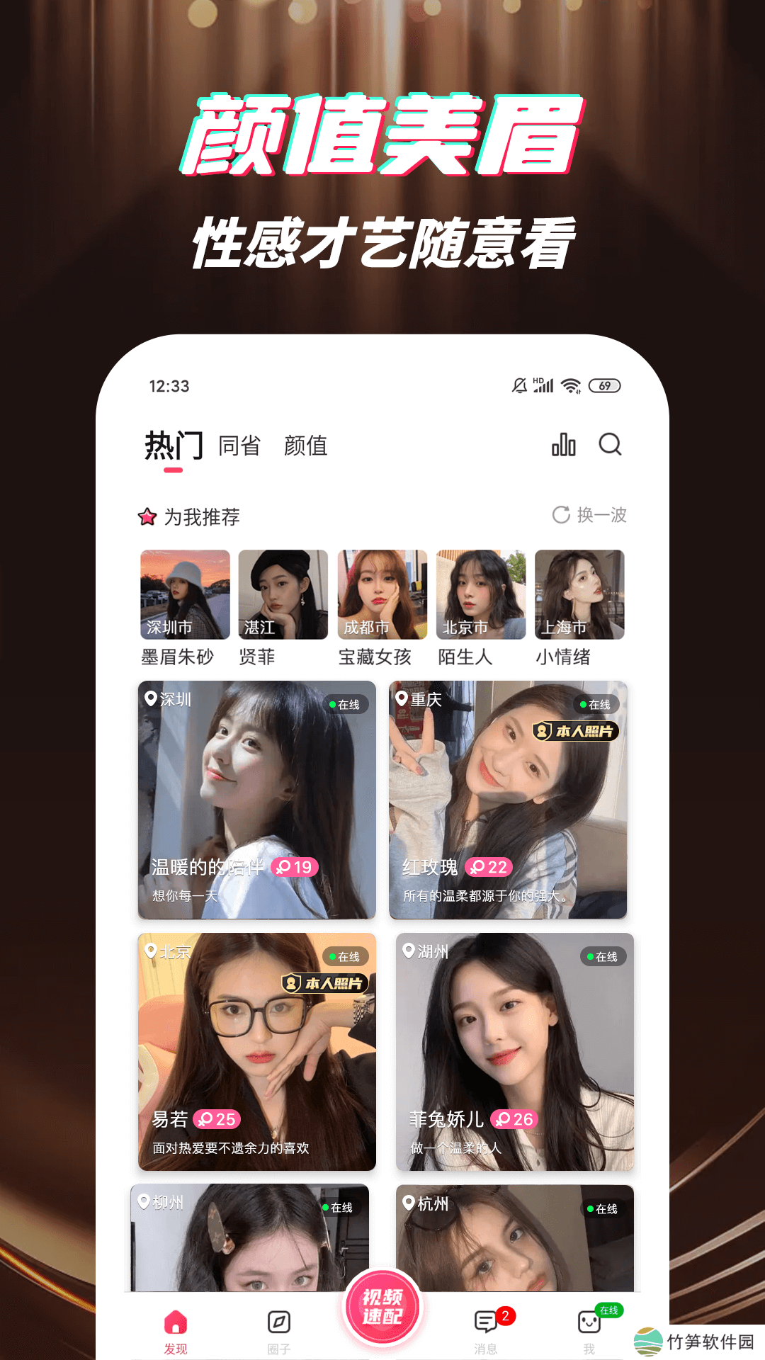 1、同城配对,一键招呼助你在线热聊。
