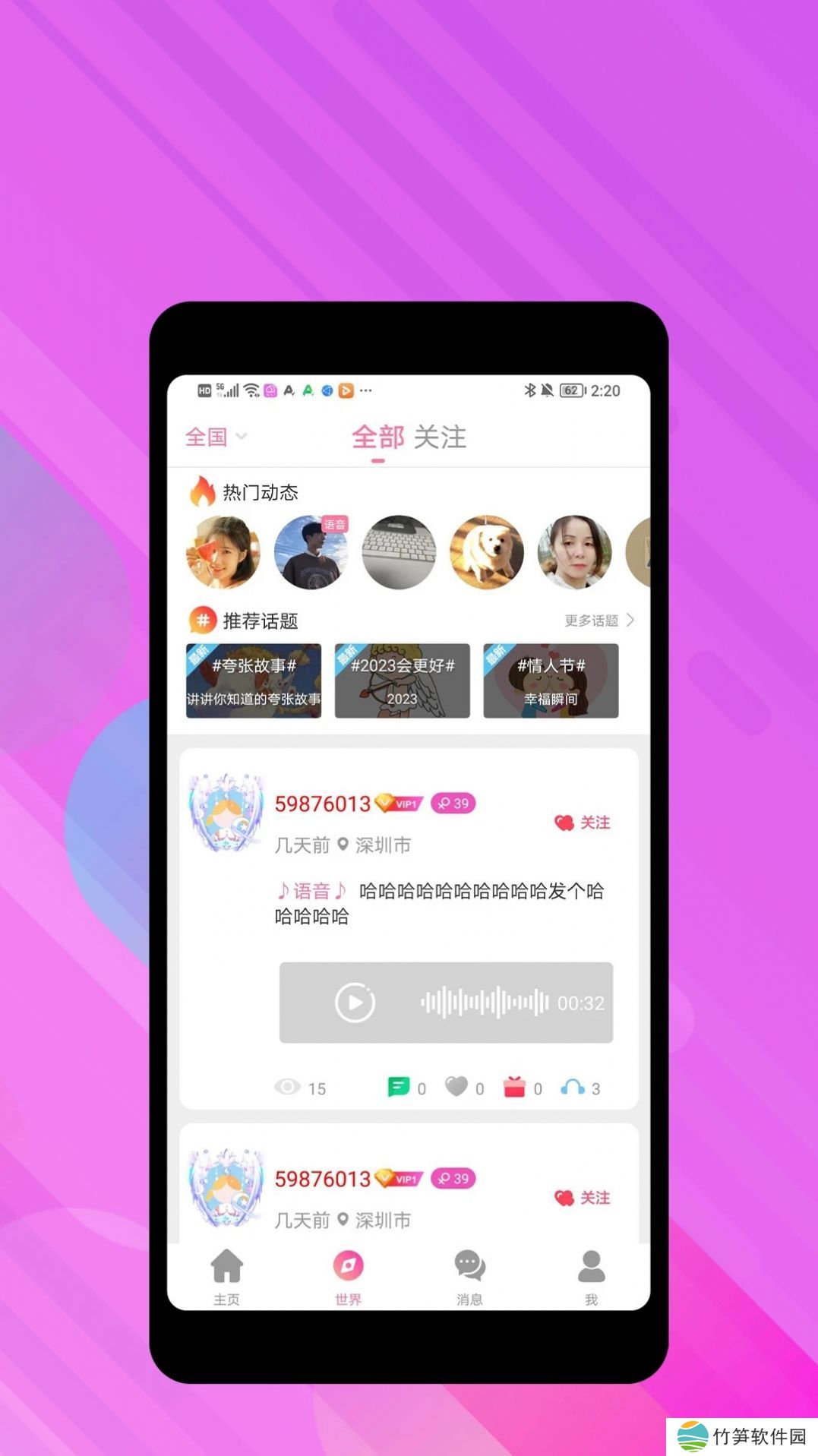声颜交友软件2023分享给大家,这是一款年轻人都在使用的社交软件,在这里你可以无所顾忌,不用在意别的东西,畅所欲言,你可以和别人交朋友,接触更多的异性,非常实用的一款软件,感兴趣的用户快来007游戏网下载吧!