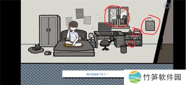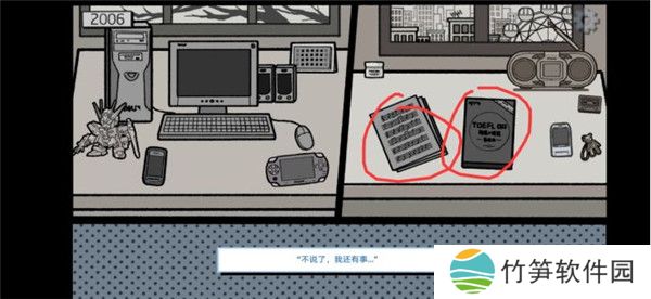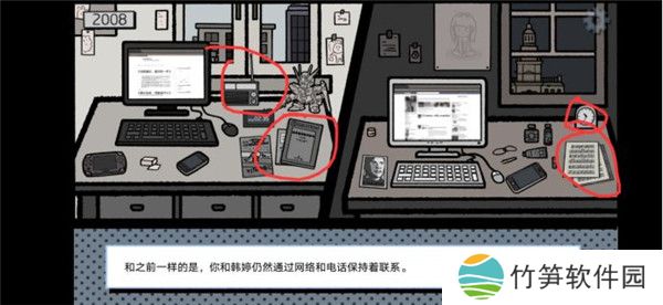 8、接下来点击桌面上的小物件过剧情,像“不说了,还有事…”这种话一次都不要点。