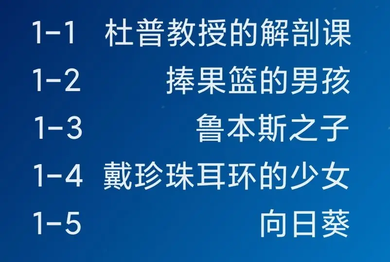 3. 阅读每幅画作的详细解析,了解画家的生平和艺术风格。