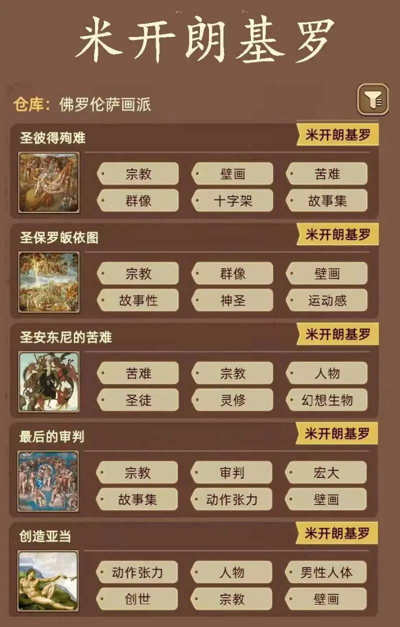 1. 游戏收录了众多*名画,让玩家在游戏中欣赏绘画。