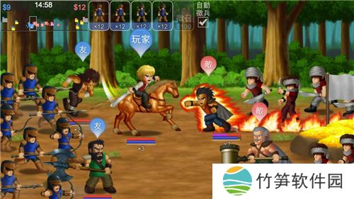 4、战争: 在战场上赚钱招兵、攻城夺营,与敌方大军展开战斗。