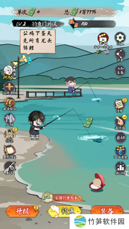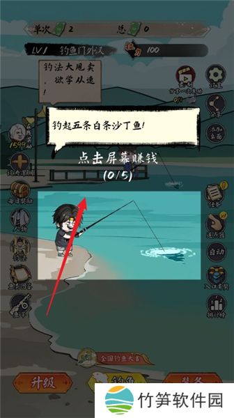游戏中,点击屏幕可以让你 赚钱,赚取的钱币可以用来购买各种升级和钓竿等道具,帮助你更好地进行钓鱼。