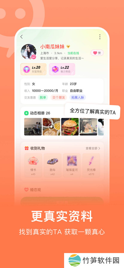 给你带来了很好的交友体验,所有的用户信息都经过了双重认证,可以轻松交友。
