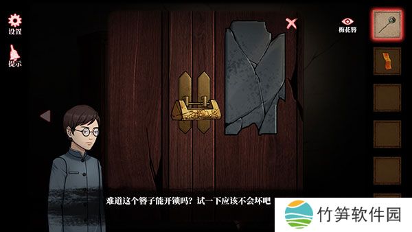 在场景中找到 梅花簪,用它来打开柜子上的锁。
