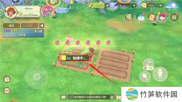 1、在左上角有一个【主线】任务,【加速农田】是对农田进行一次加速。