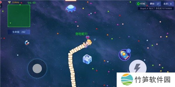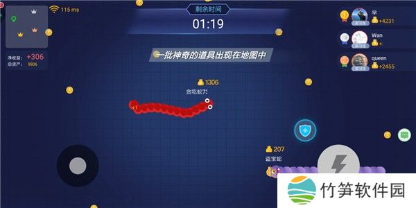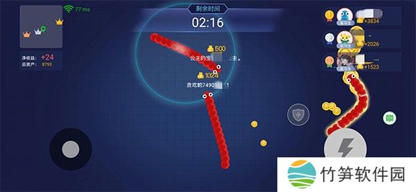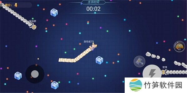 4、超车,利用加速超越其它蛇,然后突然一个变道或转身,让敌人还来不及反应便自投罗网撞上来。