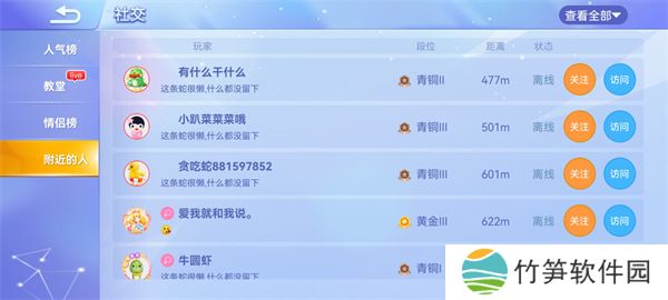 -- 附近的人:通过位置查找附近的玩家加好友。