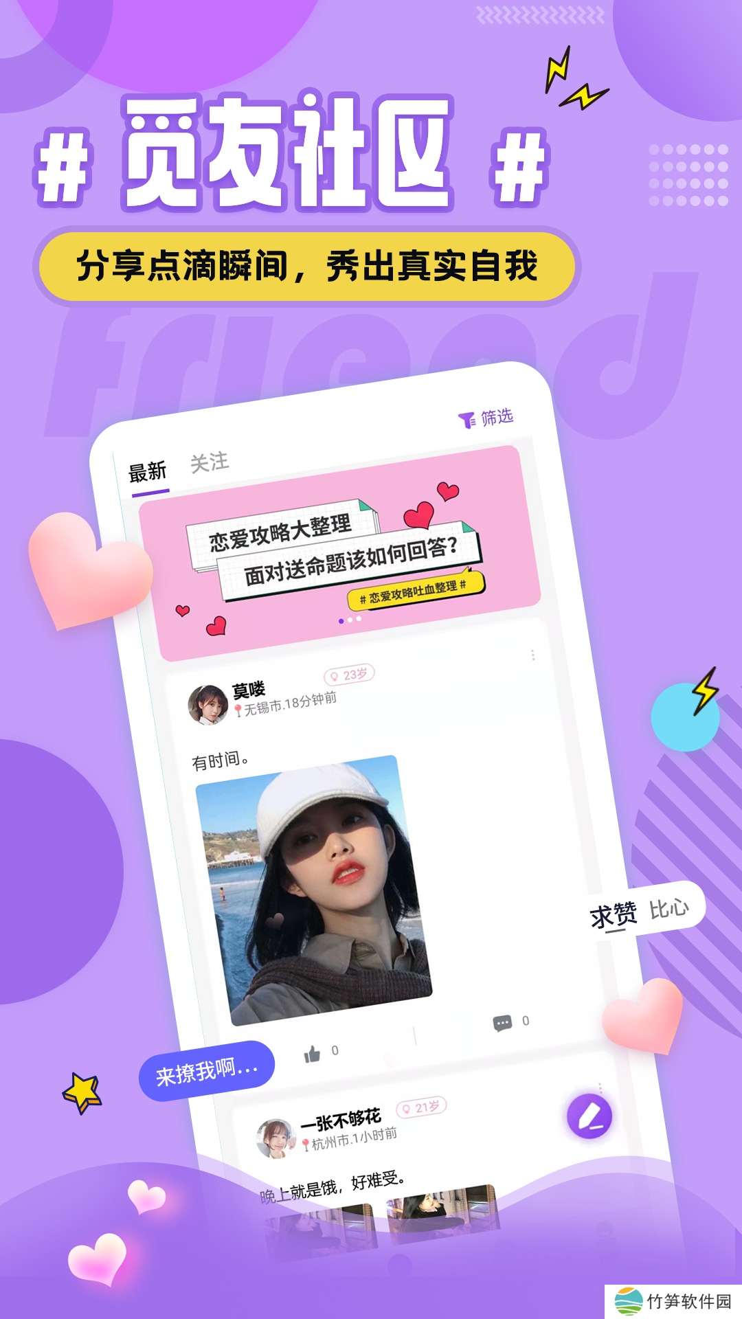 觅恋约app点评1.用声音、美丽的照片和视频描述你的内心,分享你的生活,展示你自己,遇到更了解你的陌生人。