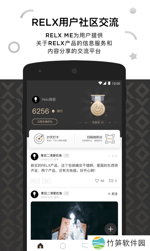悦刻RELX ME是一款专为RELX ME电子烟用户们打造社区交流软件,在这里每天都能为用户们推送RELX产品最新的信息服务,用户们们也可以在社区中交流各种电子烟话题,还可以利用此软件来扫码验证真伪,获取的积分也可以兑换各种奖励哦,赶紧来试试吧。