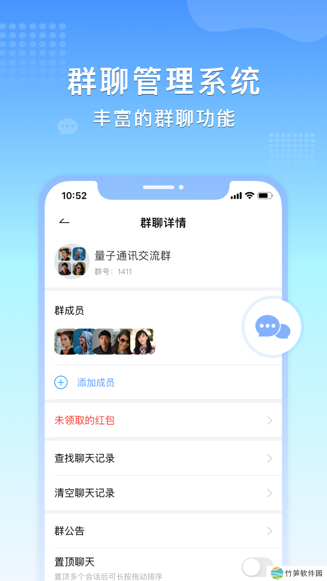 量子通讯是一款快捷方便的聊天工具,包含单人聊天、群聊天,好友管理,群管理功能,收藏文字,视频,图片,发红包等方式实现更快捷的沟通。