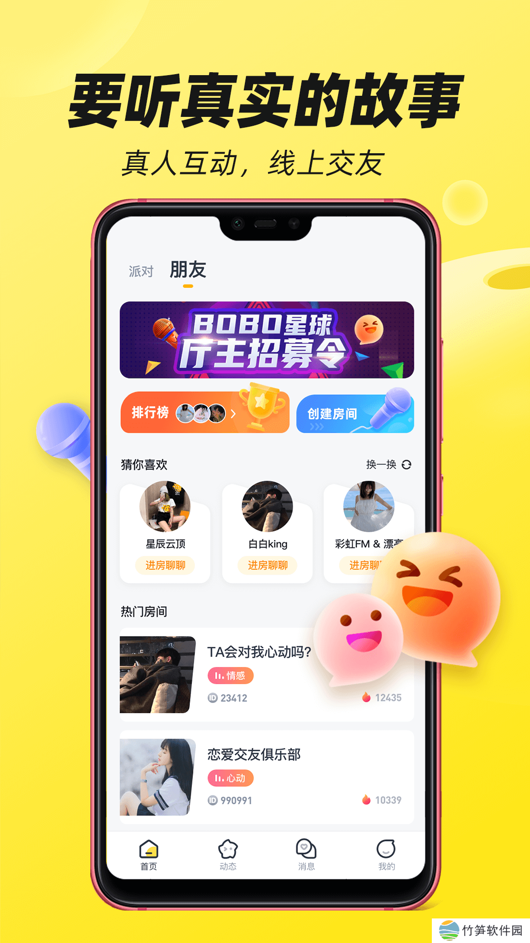 BOBO星球是一款非常好玩的语音互动社交平台,汇集了全国各地的单身男女,可以快速的查询附近的陌生人,在这里各种暖男萌妹陪你聊天,还可以根据您的喜好来为您配对,快来下