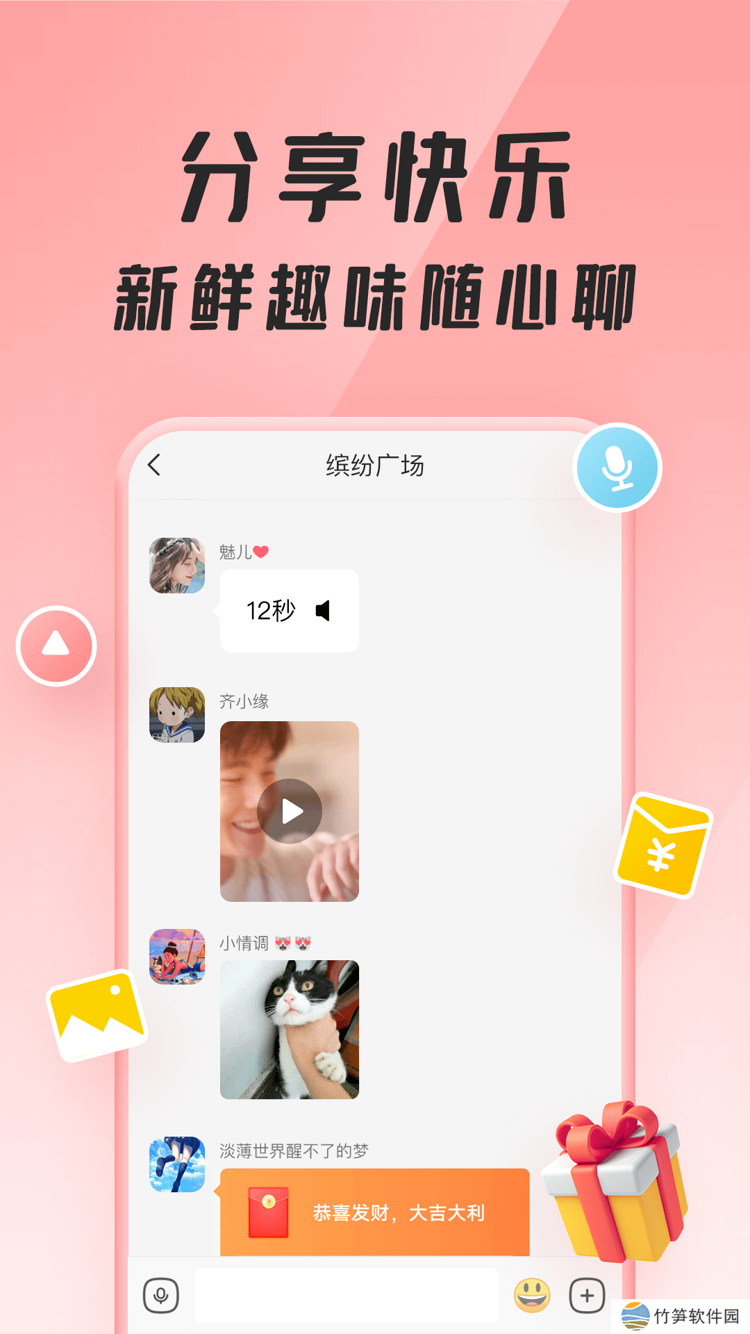 这是一款非常新颖的社交互动聊天软件。该软件通过不同的利益群体和互动圈子建立起社会门槛。用户可以找到自己感兴趣的小圈子,也可以与亲友、同学建立自己的社交群。群里有完善的聊天工具,他们可以发送图片或文字视频,让聊天更简单直接,分享生活中有趣的事情