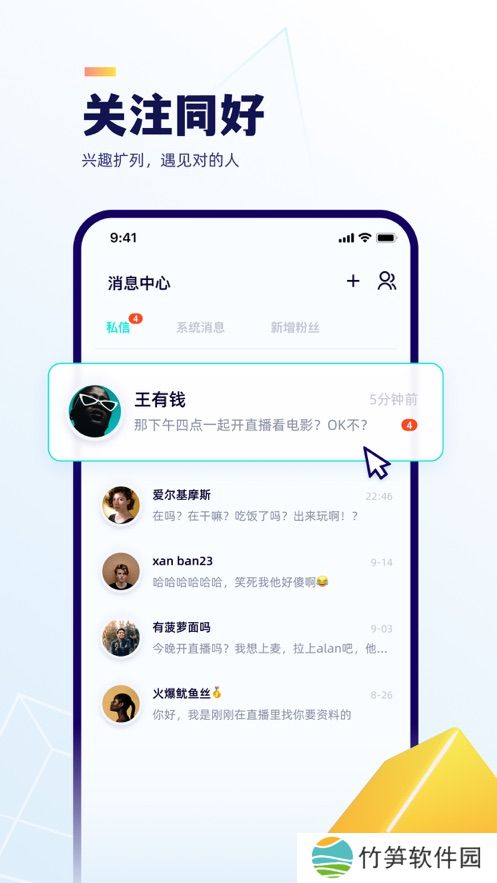 - 以兴趣为基础,以主题为核心,你可以用声音交换热爱;无论是聊童年,梦想,还是旅行,职场,总能遇见经历相似聊伴,开启相见恨晚的聊天;