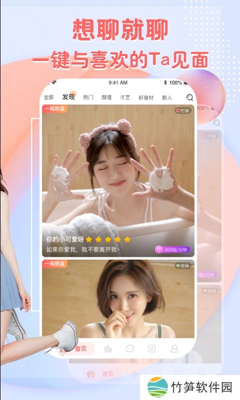 在线交友、视频直播、颜值秀场,让你快速跟异性0距离亲密互动,恋爱神器随时随地为你创造与异性独享的视频约会时刻!