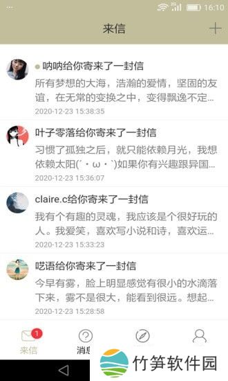 1、来信app是很简洁但是很有趣的一款记录以及交流工具,无广告;