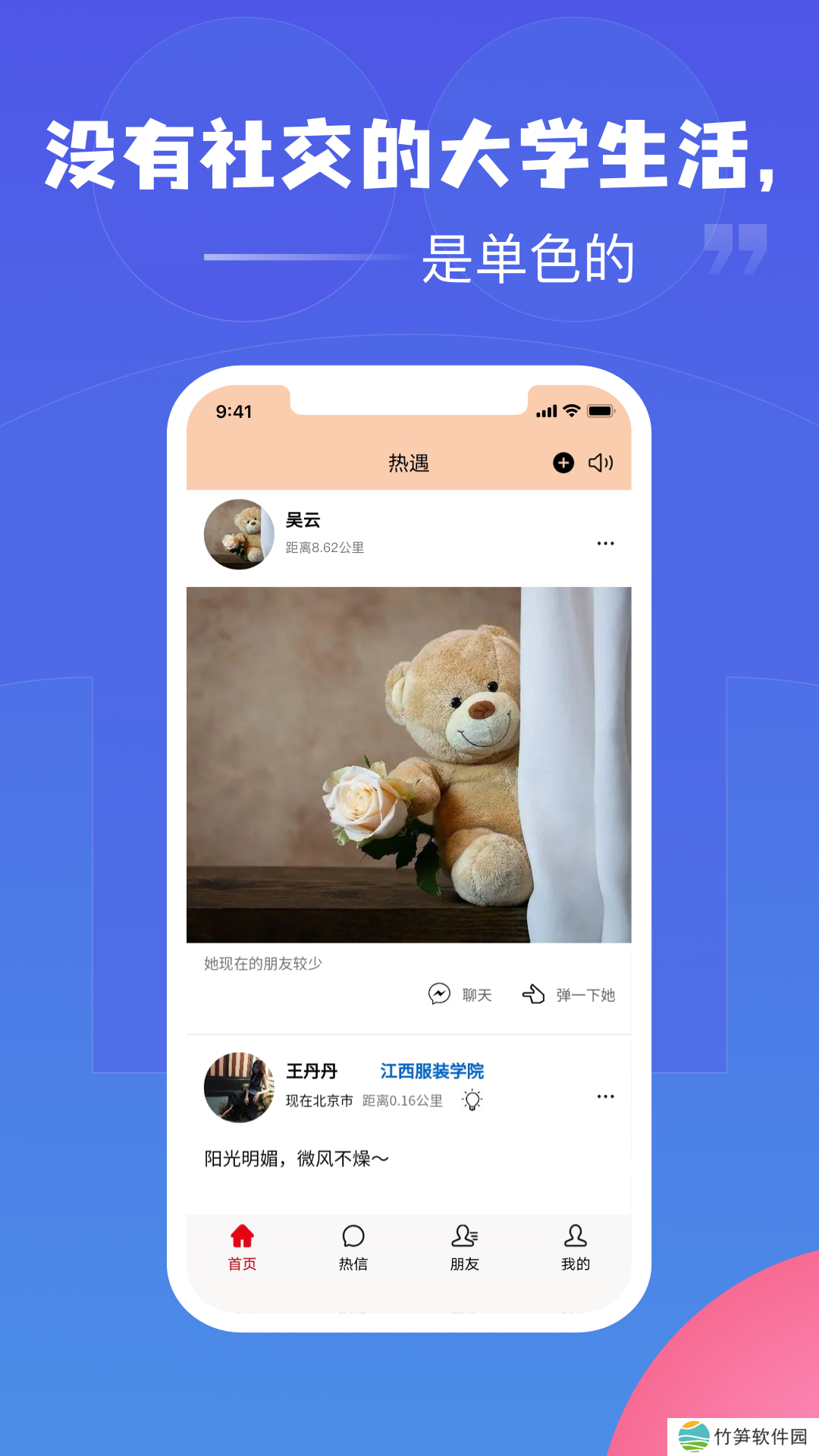 热遇app功能1、最在意的校园恋爱交友应用,女生出题,男生考试合格后可以成为朋友。